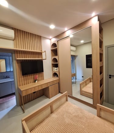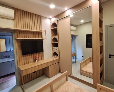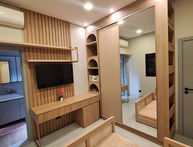 Painéis e móveis que valorizam seu ambiente do seu quarto.